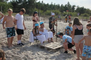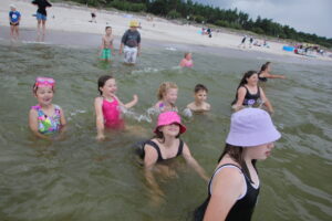 Mimo kapryśnej pogody wszyscy uczestnicy brali udział w plażowaniu i kąpielach morskich (pod opieką ratowników i wychowawców), które miały na celu zapewnienie im zahartowania organizmu, dotlenienia i nabrania odporności. Wszyscy nieumiejący pływać brali udział w lekcjach nauki pływania.