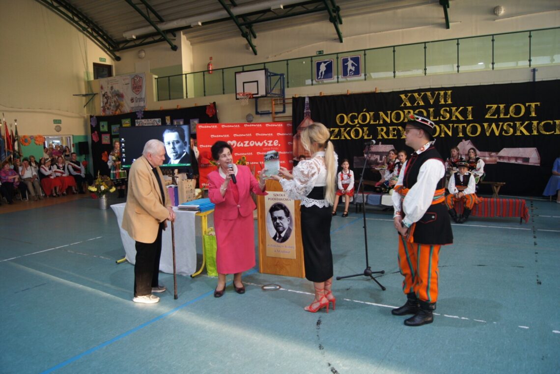 Niezwykle bogata w wydarzenia i wzruszająca była prezentacja dorobku szkoły zaprezentowana przez utalentowanych uczniów i nauczycieli. Uczestnicy nagrodzili ją burzliwymi oklaskami i podziękowaniami w swoich wystąpieniach. Podkreśliła to także Zofia Grzebisz-Nowicka – Przewodnicząca KSPS, która wraz z Januszem Syrokomskim z okazji Jubileuszu 20-lecia członkostwa SP im. Wł. St. Reymonta w Szczutowie w Klubie Przodujących Szkół KSPS w dowód uznania za nowoczesne kształcenie i dobre wychowywanie uczniów wręczyła Pani Dyrektor Monice Kordyzon statuetkę z wizerunkiem Dworku Reymonta w Chlewiskach pow. Siedlce, obraz namalowany przez uczniów na plenerze plastycznym w Łebie; paczkę książek do biblioteki szkolnej, a Panią byłą wieloletnią dyrektor Hannę Nagórek i obecną dyrektor Monikę Kordyzon udekorowała pięknymi apaszkami namalowanymi na jedwabiu. Wręczyła też upominki książkowe Przewodniczącej Rady Rodziców p. Beacie Szałkuckiej i Przew. Samorządu Uczniowskiego Marcinowi Gąsiorowskiemu. Serdecznie także podziękowała p. Wójt Szczutowa Anecie Ruszkowskiej i Staroście Powiatu Sierpc p. Przemysławowi Burzyńskiemu za troskę o tworzenie coraz lepszych warunków uczniom i nauczycielom dla innowacyjnego kształcenia i nowych wyzwań edukacyjnych wręczając im obrazy namalowane przez uczniów na organizowanych co roku przez KSPS plenerach plastycznych. Nagrodziła też upominkami książkowymi p. Annę Wojciechowską – Przew. Ogólnopolskiego Stowarzyszenia „Nasz Reymont”; p. Mirosławę Lechowską – Przew. Klubu Szkół Reymontowskich; p. Ewę Dylewską – Wiceprzewodniczącą tego Klubu, dyr. SP im. Wł. St. Reymonta w Stróżewie.