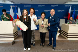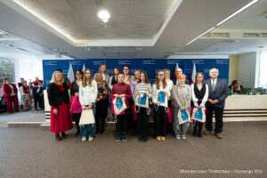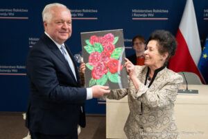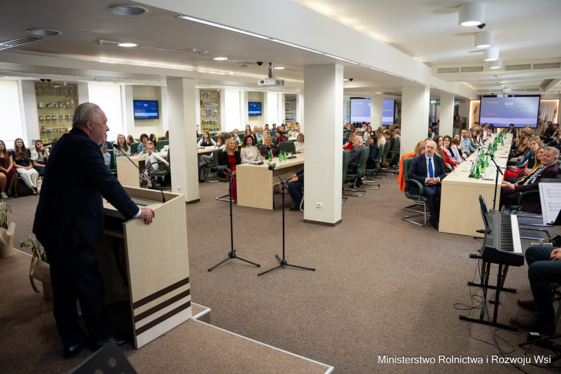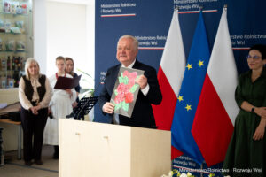 W imieniu Patrona Honorowego Pana Ministra Stefana Krajewskiego wszystkich uczestników Gali bardzo serdecznie powitał i podziękował za przybycie do siedziby Ministerstwa Pan Jacek Czerniak – Sekretarz Stanu w MRiRW. Podkreślił także wielką rolę Babci i Dziadka w życiu wnucząt, przywołując piękny przykład z własnego dzieciństwa. Złożył serdeczne gratulacje i życzenia Laureatom, ich nauczycielom, rodzicom i organizatorowi Ogólnopolskich Konkursów promujących i rozwijających talent plastyczny i literacki uczniów różnych typów szkół w Polsce.