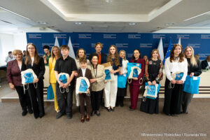 Wyrazy uznania, gratulacji i serdeczne życzenia przekazał też Pan Kacper Lawera – Dyr. Departamentu Komunikacji MEN i odczytał bardzo serdeczny i motywujący do dalszych wspólnych działań List Pani Barbary Nowackiej Ministra Edukacji, który umieszczamy na zakończenie niniejszej informacji o Gali.